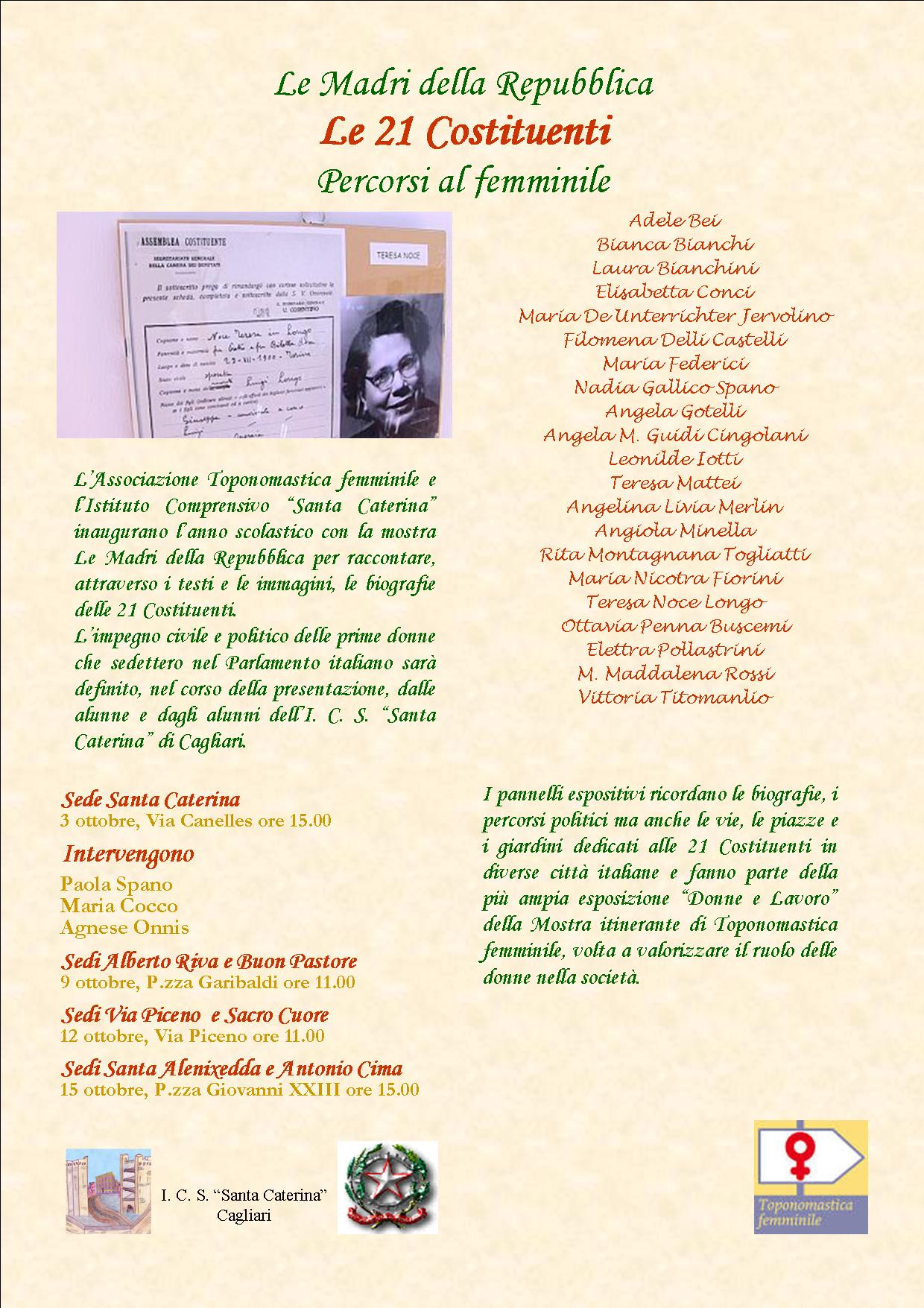 Lo scorso anno scolastico abbiamo lavorato a un progetto di Toponomastica Femminile intitolato Vie Enigmistiche e abbiamo studiato le biografie di personaggi femminili e maschili importanti per il nostro territorio regionale e nazionale. L’esperienza dell'anno scorso è stata ripetuta anche quest’anno con la realizzazione di un progetto legato agli articoli della Costituzione e allo studio di figure femminili che hanno contribuito all'affermazione di diritti fondamentali per le donne e per gli uomini. Abbiamo approfondito alcuni articoli legati all'istruzione, all'uguaglianza, alla convivenza civile, al rispetto dell’ambiente, al diritto al lavoro e alla salute, al rifiuto della guerra... Sono state esperienze molto importanti ed educative, in quanto in tutte e tutti noi si è rinforzato il concetto di uguaglianza e pari dignità di genere.